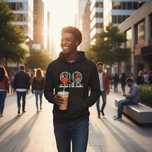 Twin DJ's-Retro Groove-Premium Unisex Pullover Hoodie | JustHoods JH001 Deep Black
